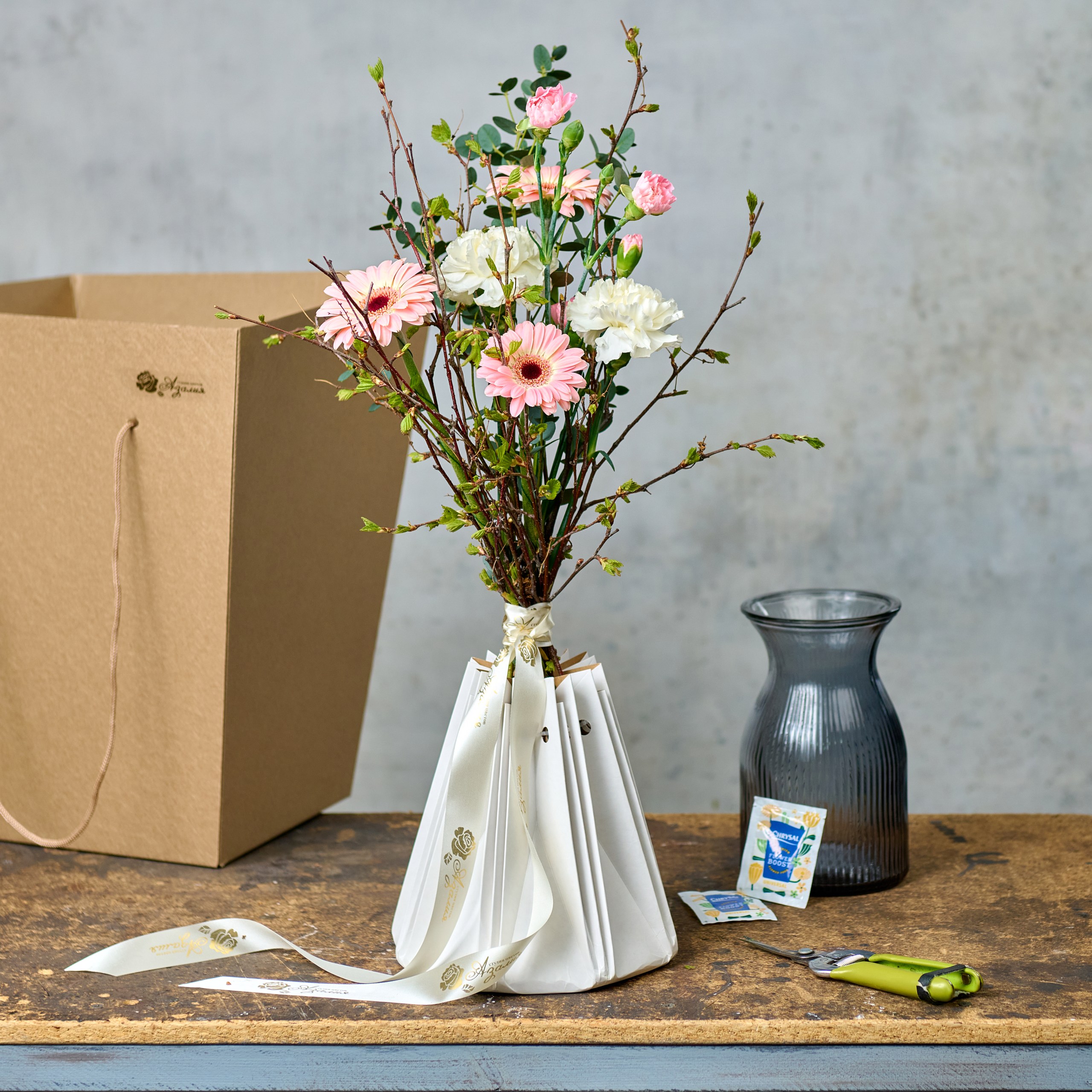 При оформлении первой подписки вы получаете в подарок все необходимое для содержания и ухода за цветами: ваза, секатор, кризал, инструкция по уходу за свежим срезом.