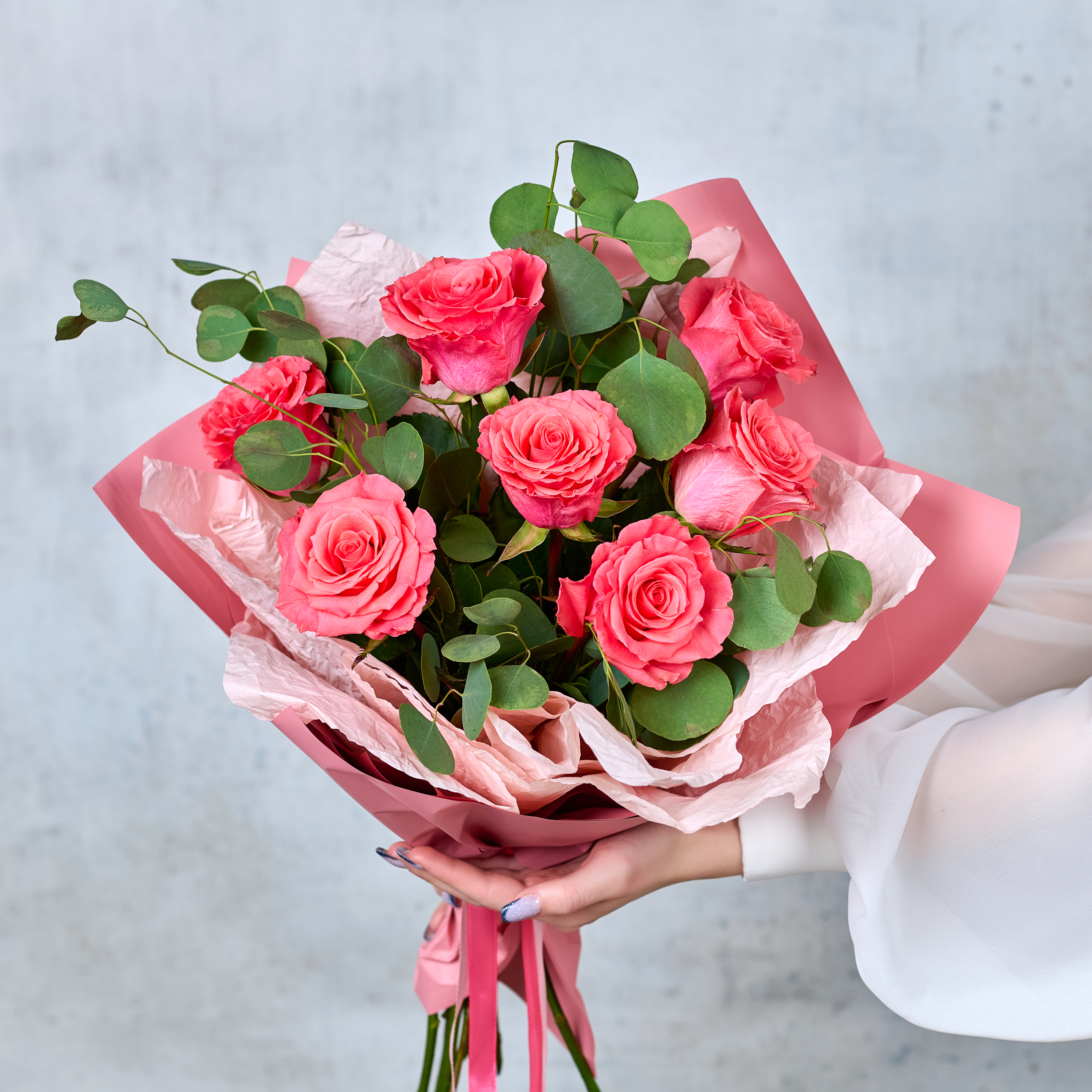 Классический монобукет в нежных тонах – идеален для любого повода. Возможны небольшие изменения элементов. Общий вид и композиция букета будет сохранена.