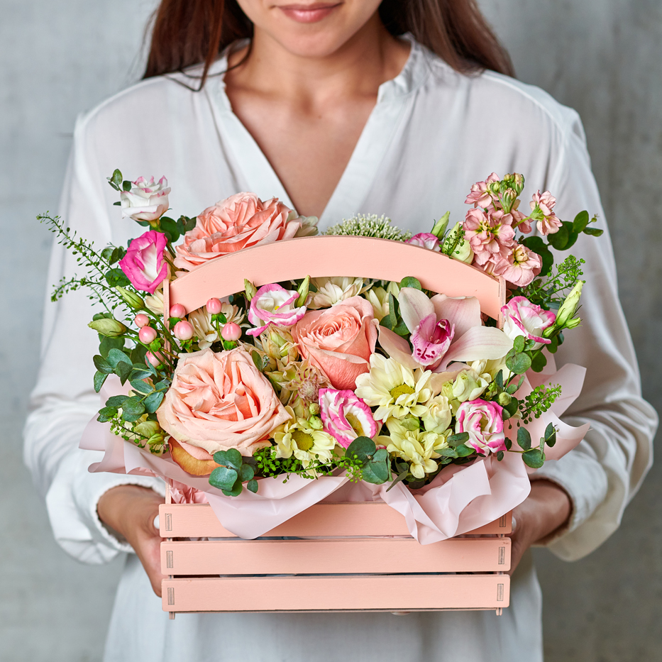 Садовое восхищение в розовых оттенках. Нежно, изысканно и очень тепло - идеальный цветочный подарок для любого повода. Возможны небольшие изменения элементов. Общий вид и композиция букета будет сохранена.