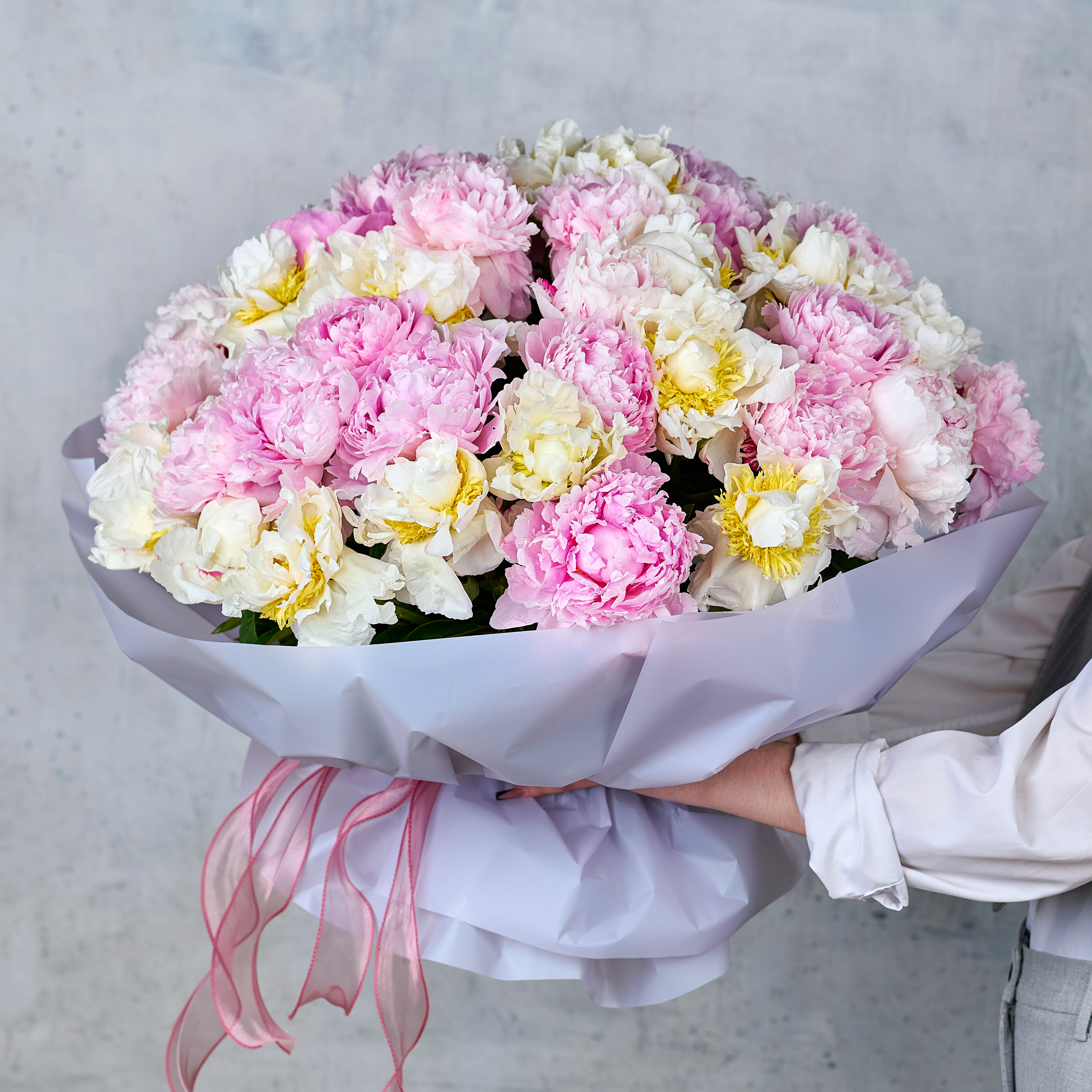 Букет из 51 пиона в пышной упаковке - мечта каждой девушки, какого бы возраста она не была. Цветы, которые хочется фотографировать, вдыхать, держать и которыми можно любоваться каждый день. Ароматные шары в букете постепенно раскроются и окружат тонким ароматом лета. Обратите внимание, что пион - сезонный цветок, при необходимости менеджер может предложить замену, исходя из наличия товара.