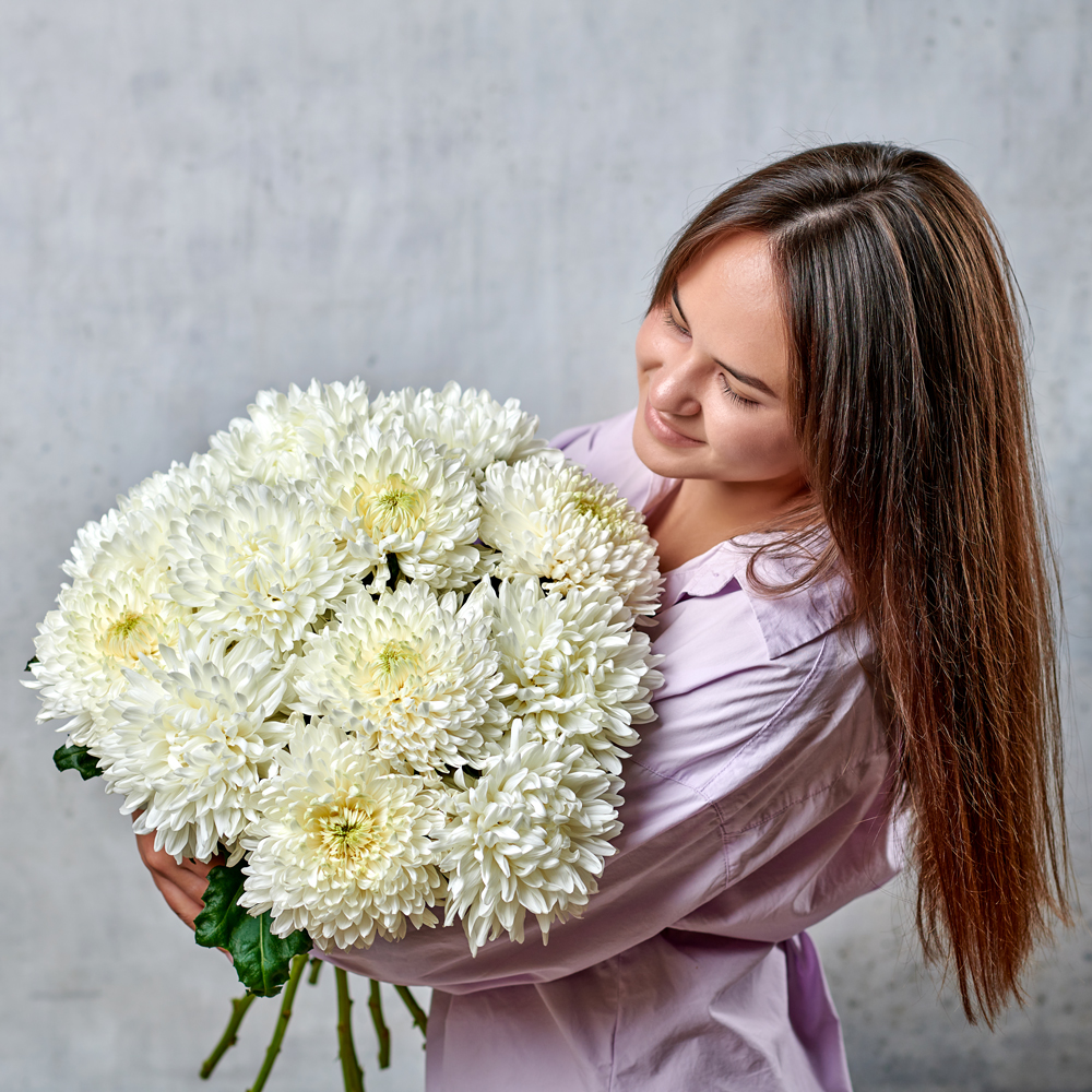 Хризантема "Антонов" имеет один из самых крупных бутонов, ее часто выбирают в подарок благодаря невероятному объему и шарообразной форме. Каждый лепесток складывается в единую шапку, а крепкий стебель подчеркивает величественность и красоту цветка. Такая хризантема будет прекрасно смотреться, как самостоятельный подарок и в букете из нескольких цветков.