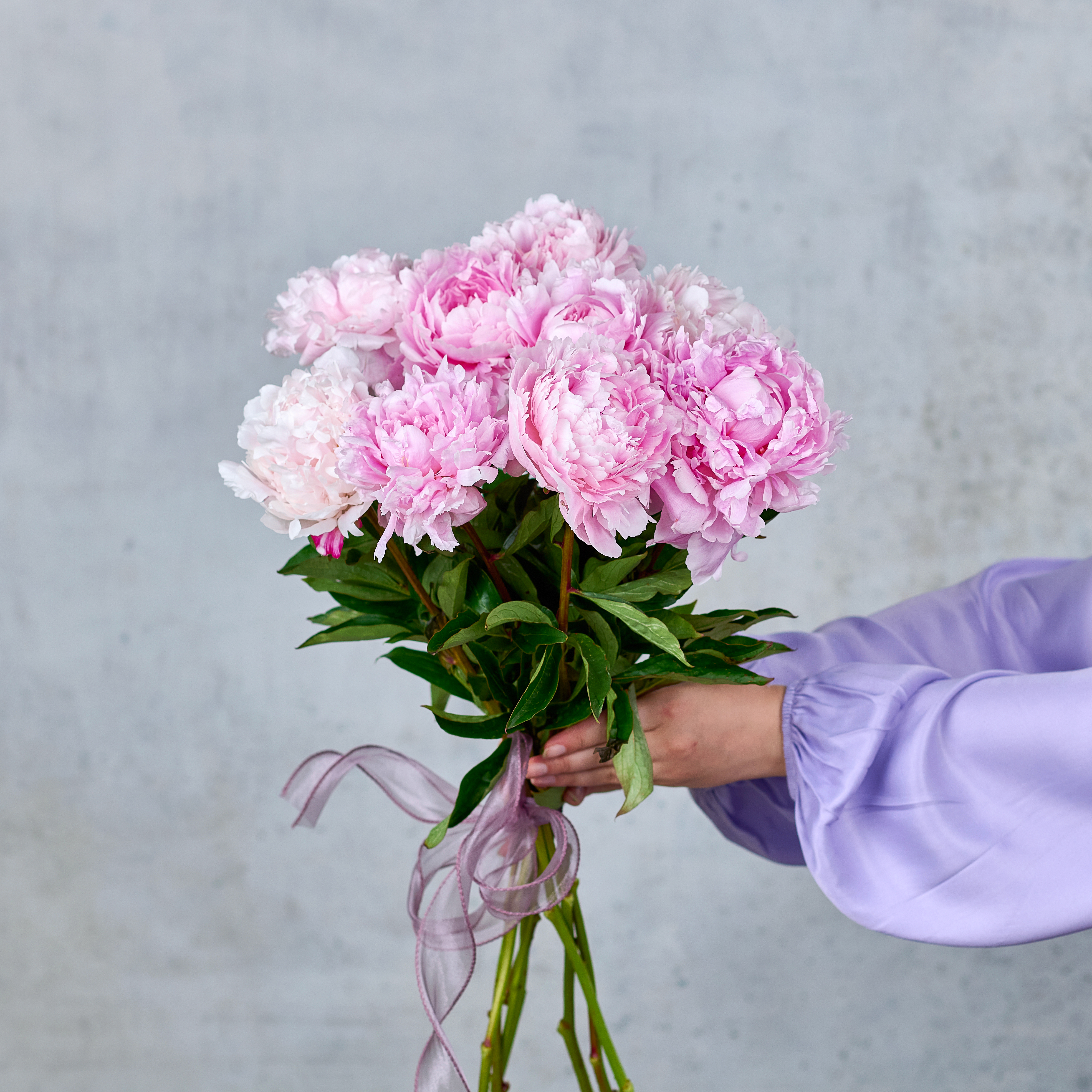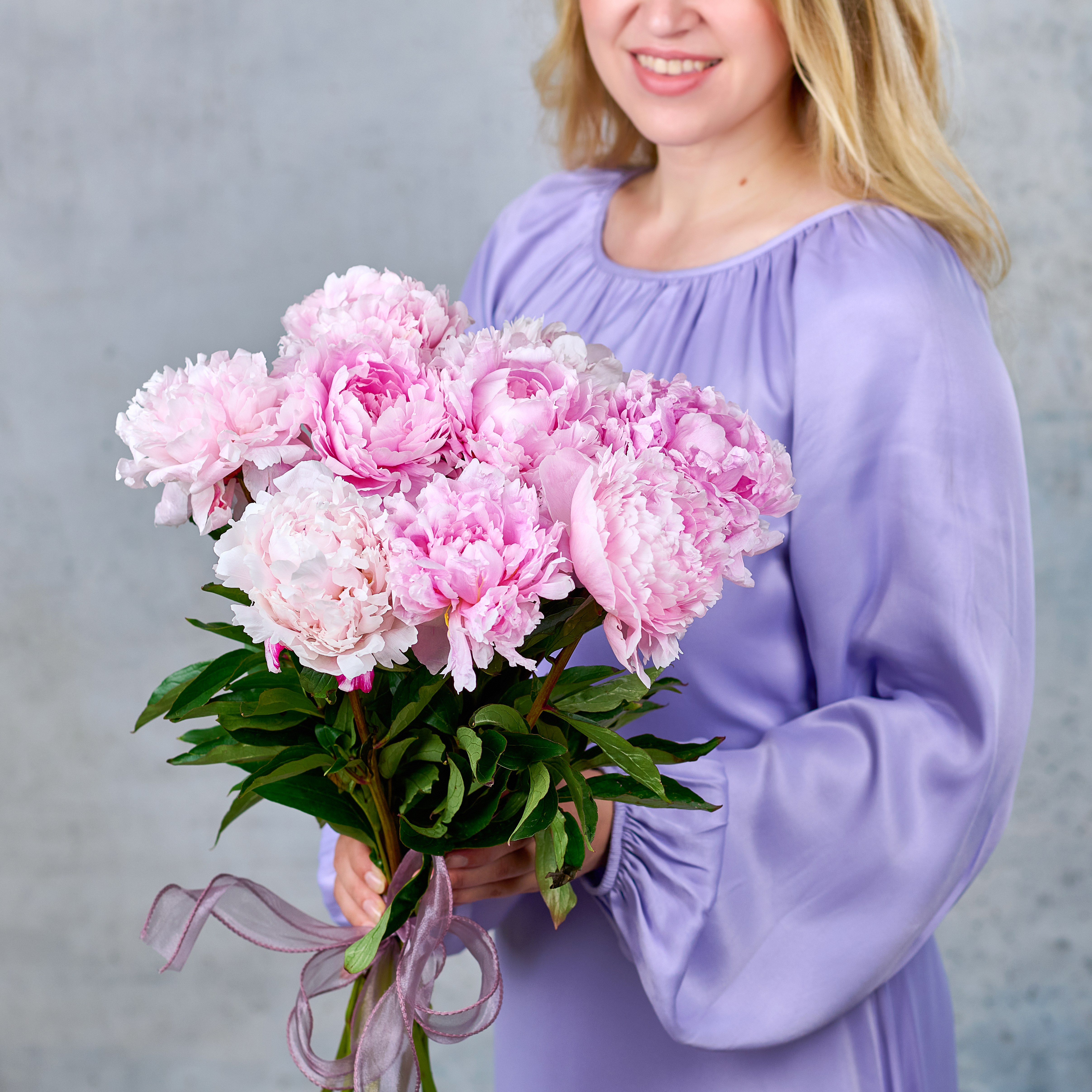 Букет из 11 пионов в пышной упаковке - мечта каждой девушки, какого бы возраста она не была. Цветы, которые хочется фотографировать, вдыхать, держать и которыми можно любоваться каждый день. Ароматные шары в букете постепенно раскроются и окружат тонким ароматом лета. Обратите внимание, что пион - сезонный цветок, при необходимости менеджер может предложить замену, исходя из наличия товара.