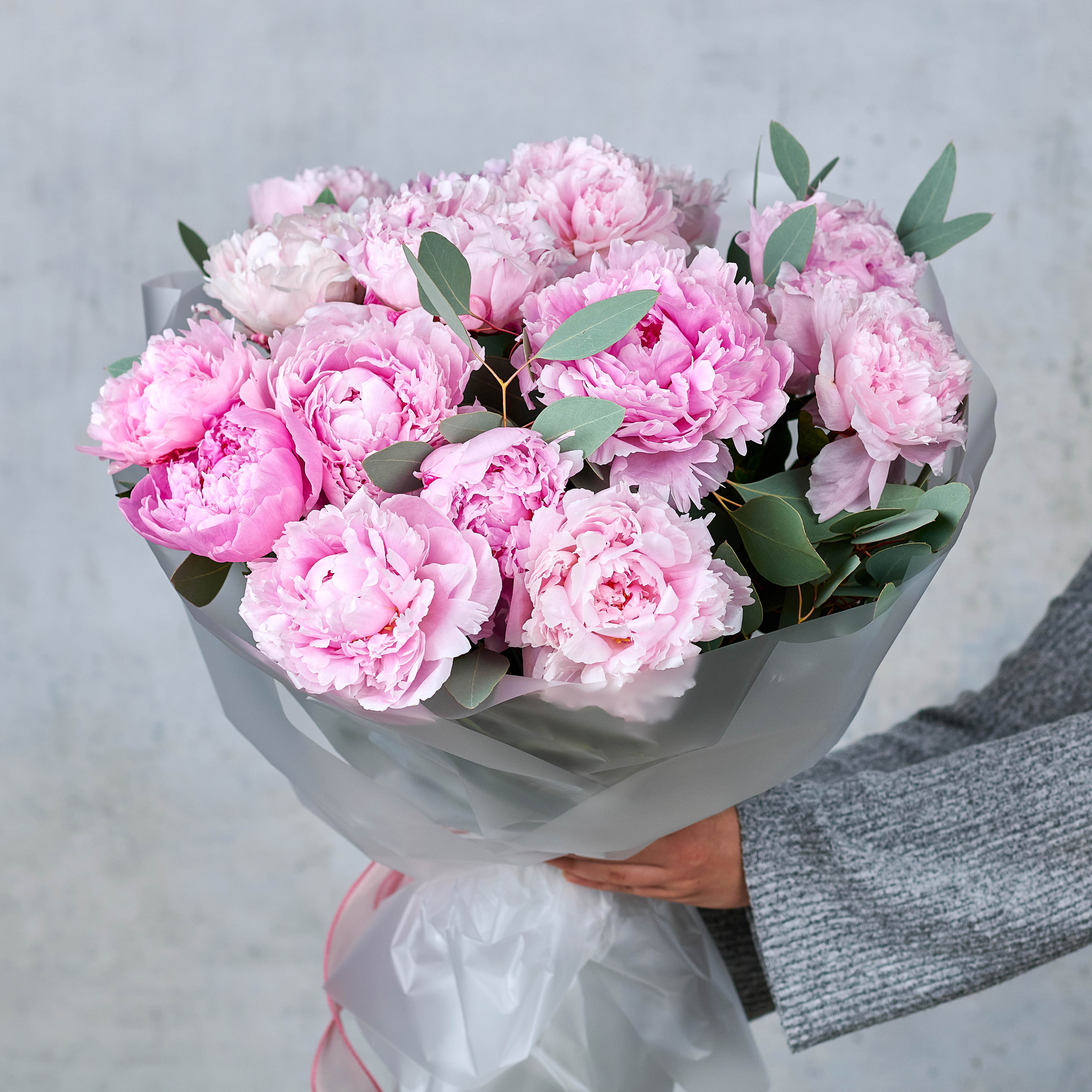 Букет из 15 розовых пионов