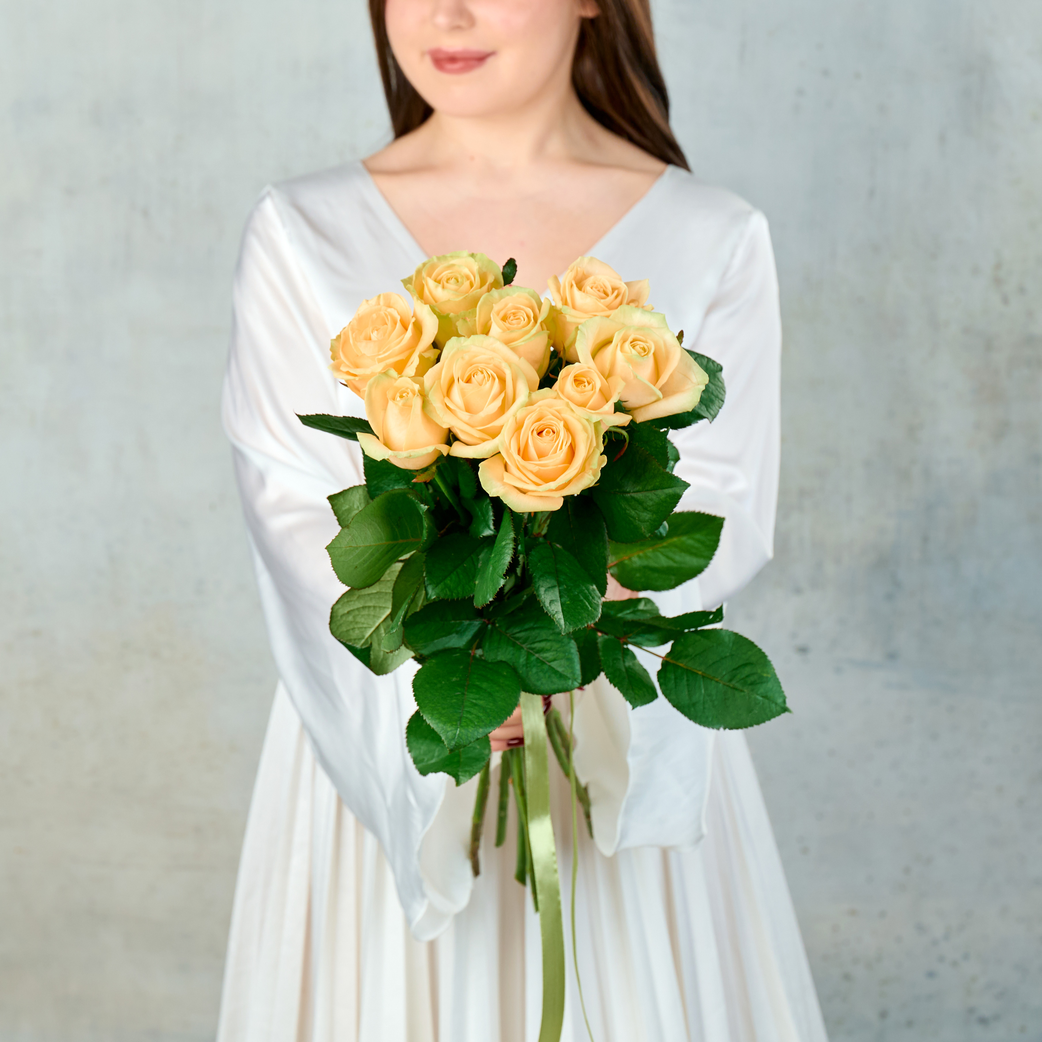 Букет из 9 кремовых Российских роз