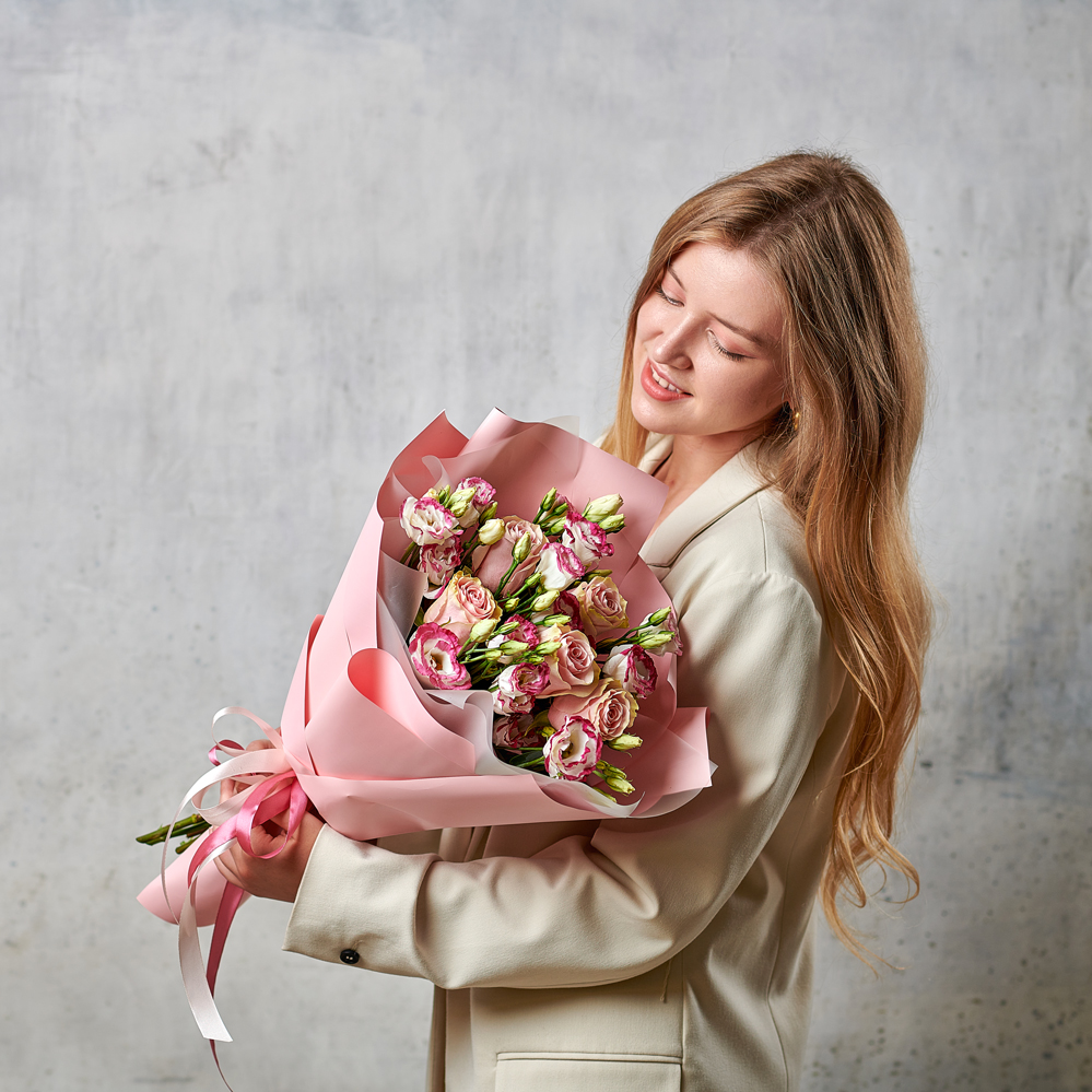 Букет "Розмари" соткан из множества нежнейших бутонов эквадорских роз и эустом, обернутых в элегантную нежную упаковку. Эустому также называют японской розой. Такой букет поможет выразить самые нежные чувства и сказать "люблю" на всех языках мира. Возможны небольшие изменения элементов. Общий вид и композиция букета будет сохранена.